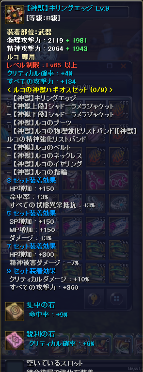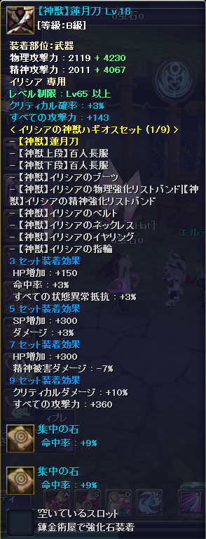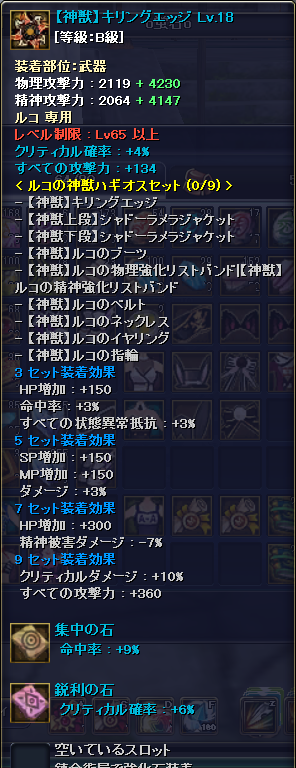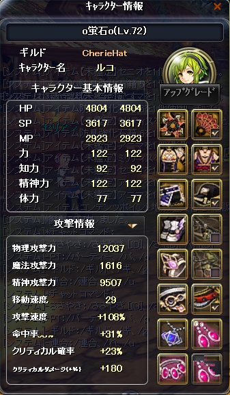 ルコにゃんが72になりますた\(^o^)/ それに伴って防具も一新! 今まで上段神獣・下段無限というチグハグな装備ですた(゚Д゚*) OP再付与という心強い味方がいるので、青さえくればあとは再付与の出番だ…! とりあえずルコにゃんの火力も12Kまで上がりました… 次はイリとバルも72まで上げたい…! 間に合うかなぁ(´・ω・`) シナリオもアバのSSも撮らないといけないのに…(´ω`) |