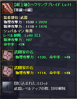 それが明日の23時59分で終わってしまうので… あぁもっと頑張ってれば良かった(。´Д⊂) とりあえずバルちゃんのレベルが48まで上がりました(ノ´∀`*) これで武器変えられて火力もうpしました(o´∪`o) で、アクセを新調しようと思い商店覗くと… (´゚^゚`)!! いいものが…ない…だと…ぅ… 個人的にはノクバOPがついた勇者の腰飾り?あれが欲しかったんですが… 置いてなく仕方ないので現状維持です(。´ーтー`。) なんだか最近D級装備もないし、低レベル帯は育てづらいなぁ… まぁ最近は過疎も酷くなってるし、サービス終了までのカウントダウンも始まりつつありそうですし… 仕方ないの…かなぁ(*´ω’)゚+。 |